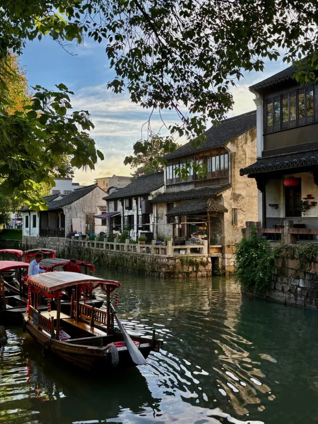 摇橹船划过波光粼粼的市河红灯笼映着白墙黛瓦年味在每一块石板路上流淌
