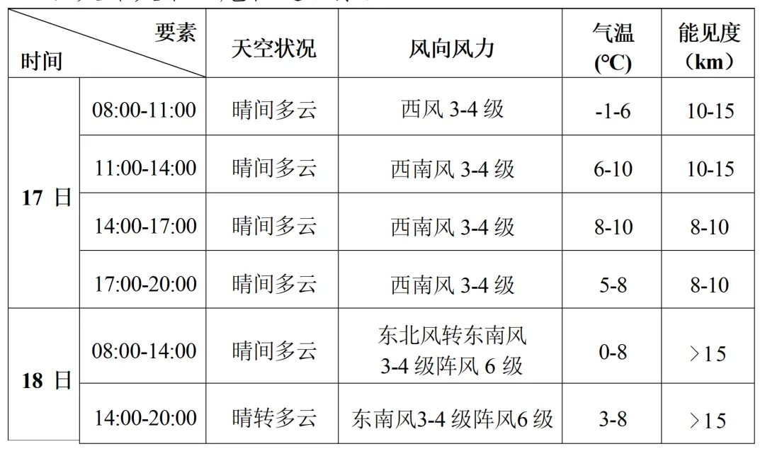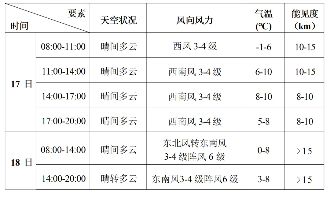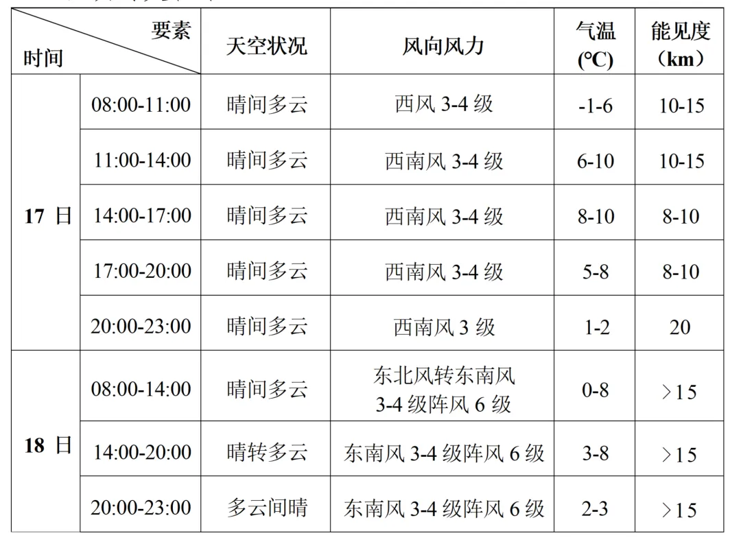 2月17-18日滨海新区旅游景点天气预报