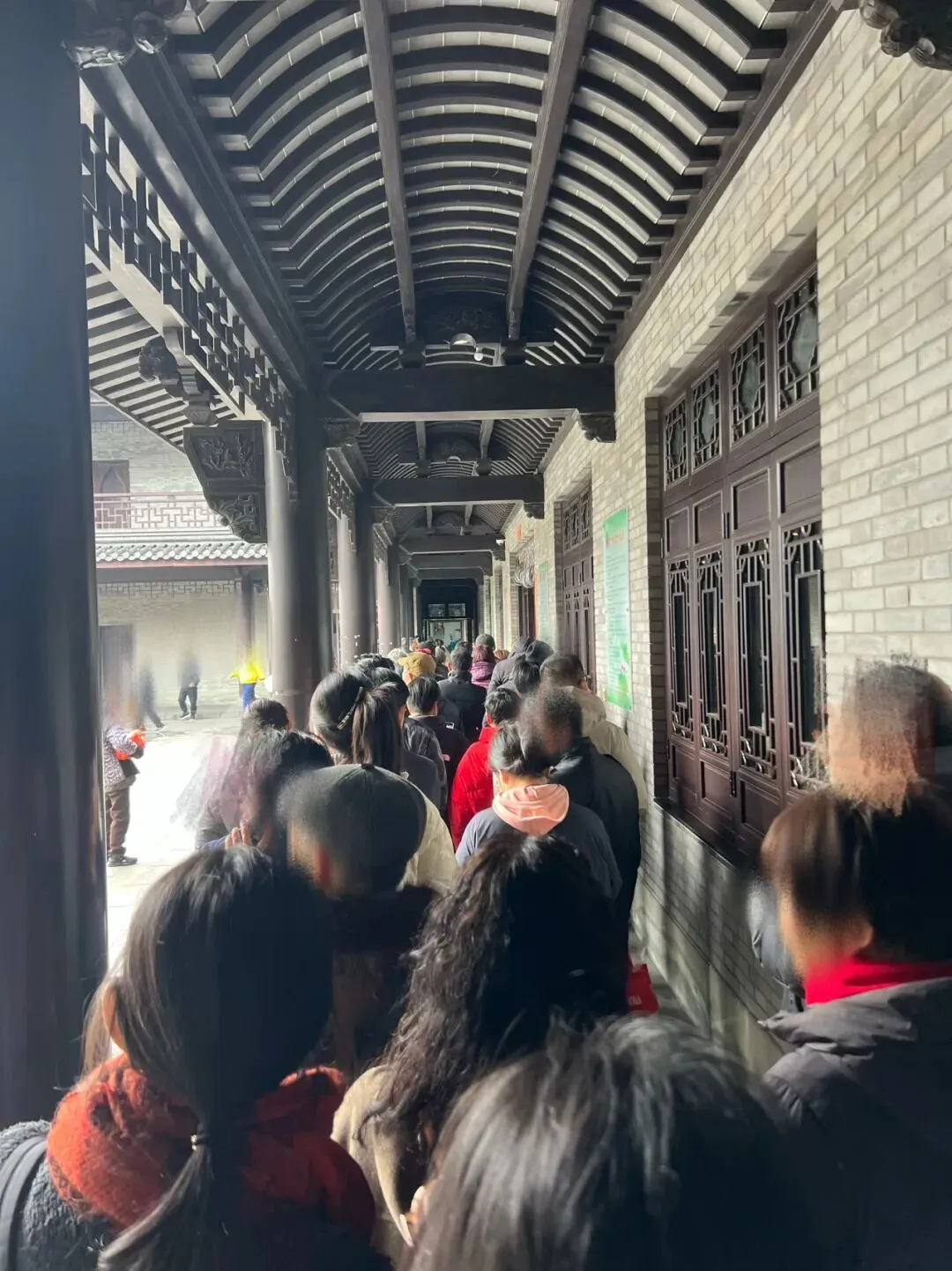 你看,素斋馆门口队伍够壮观吧!人山人海直接望不到头,中午11:13餐厅门口就排了长长的队伍了,我估摸着这个队伍有两三百米长,长长的队伍在餐厅门口绕了好几大圈。全是来新年祈福、吃顿素斋的人,这里的年味特别浓。