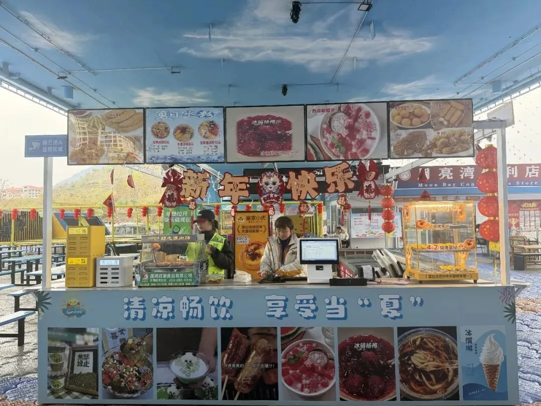 便民服务点与特色小吃摊同步待命,货架上物资充足,摊位前烟火升腾,热乎的本地小吃、齐全的便民物品,让游玩的疲惫一扫而空。从卫生清扫到设施维护,从氛围布置到服务保障,每一处细节,都藏着我们的用心。
