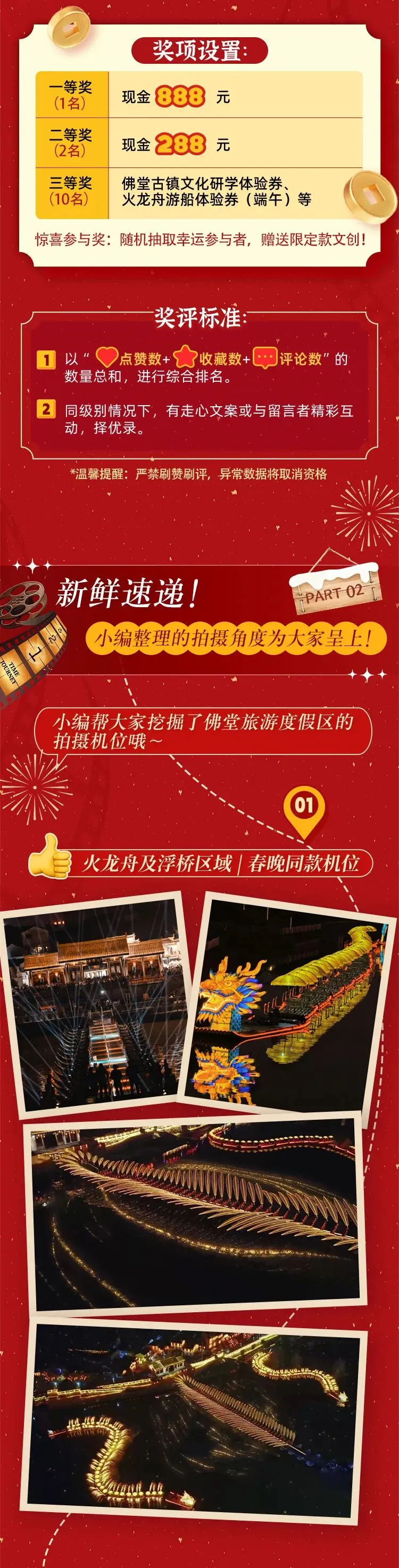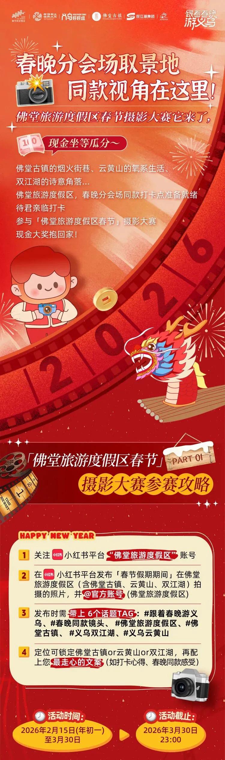 您现在的位置是:首页 > 国内旅游目的推荐 > 正文 国内旅游目的推荐 春晚超燃同款镜头在这里!佛堂旅游度假区春节摄影大赛ING,奖金等你来分~ admin2026年02月17日 13:57:45国内旅游目的推荐11 春晚超燃同款镜头在这里!佛堂旅游度假区春节摄影大赛ING,奖金等你来分~ 转载请说明来源于"旅荐网",部分内容转载自网络,如有侵权请联系qlwl@foxmail.com删除 本文地址:https://www.15386.cn/post/111250.html 上一篇 神卡!冬游西藏199旅游卡,可住洲际/香格里拉,还送餐食旅拍游乐门票 下一篇 在新疆旅游 吃喝玩60公斤 相关文章 【互动素材】北京颐和园旅游攻略 格鲁吉亚!6个神仙景点附拍照攻略 张家口保姆级旅游攻略,去张家口前必看! 3-5月东京旅游攻略丨樱你而来,遇见东京 印尼旅行全攻略|16个景点真实测评,3-5月去直接抄作业! 南京春假游玩攻略|抢票预约+省钱住宿+3天不绕路路线,全是实用干货 重庆旅游实用攻略 旅游ERP系统优势解析及企业管理效率提升白皮书 江西经典旅游线路,交通、住宿,避雷指南! 厦门7天6晚旅游攻略|闽南文化深度解锁,厦门+泉州+土楼全路线 发表评论 取消回复 评论列表 这篇文章还没有收到评论,赶紧来抢沙发吧~