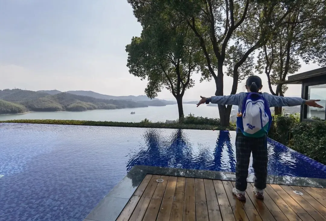 富子宾馆门口观景平台可远眺天目湖大坝与湖景,视野极佳