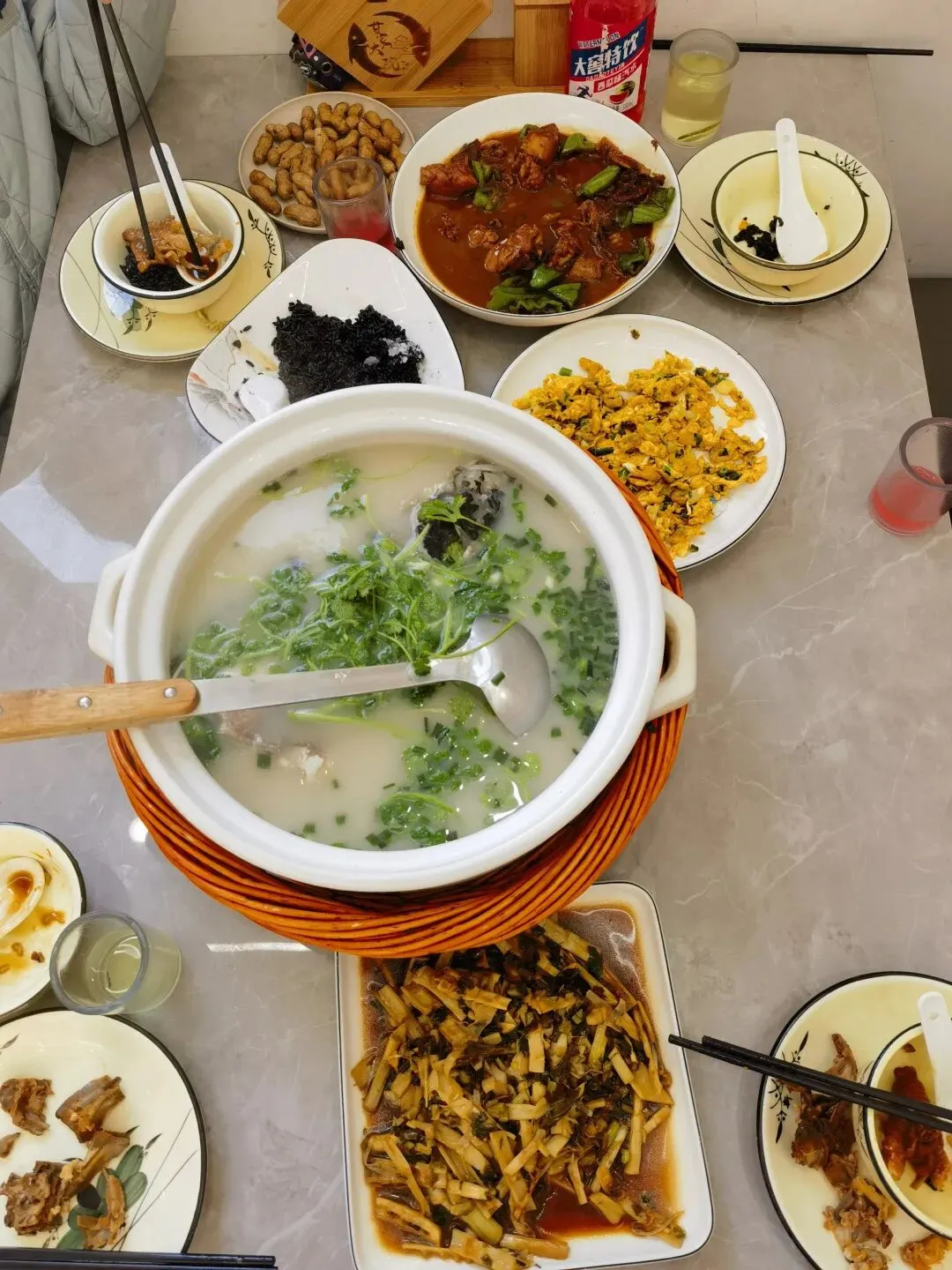 第一站结束,大家都饿了,去吃鼎鼎有名的天目湖鱼头。