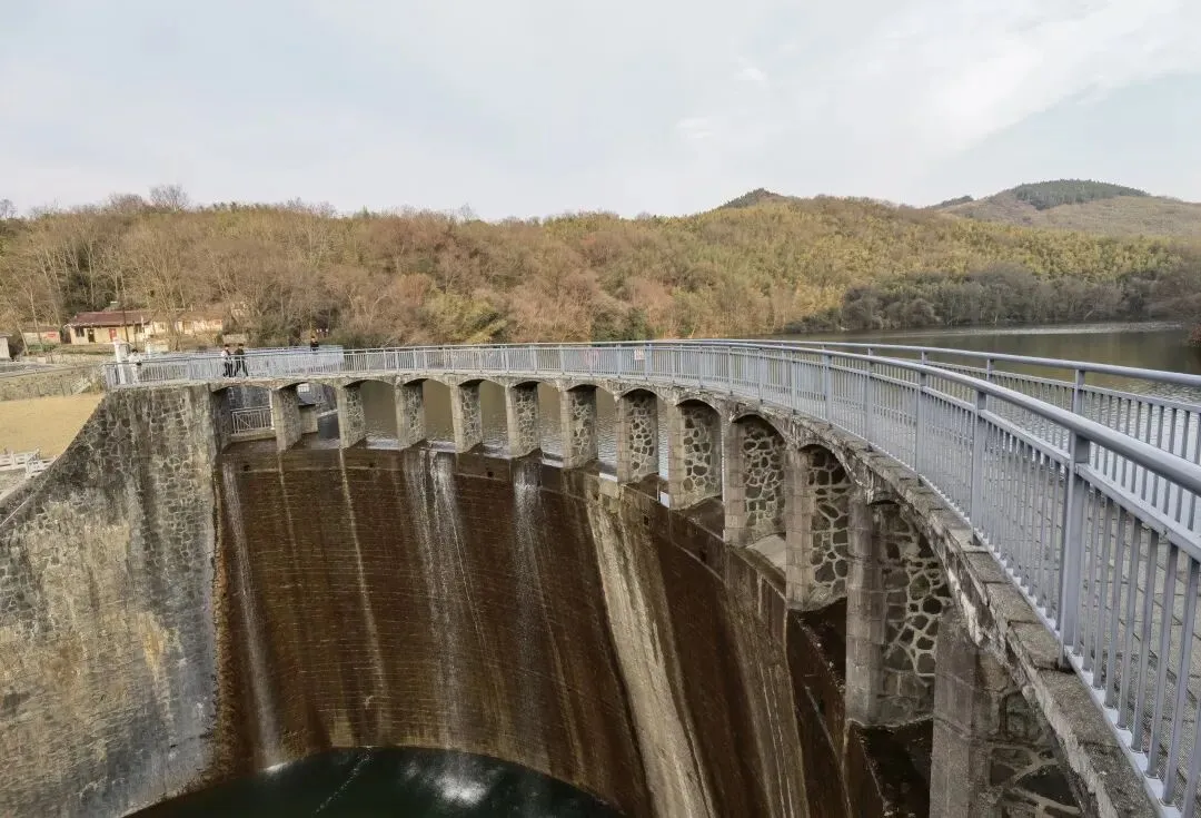 这是一座非钢筋混凝土结构的水库大坝,雨后会形成壮观瀑布,极具观赏性。瀑布下游便是溪流,也是江苏夏季溯溪玩水的热门打卡地。