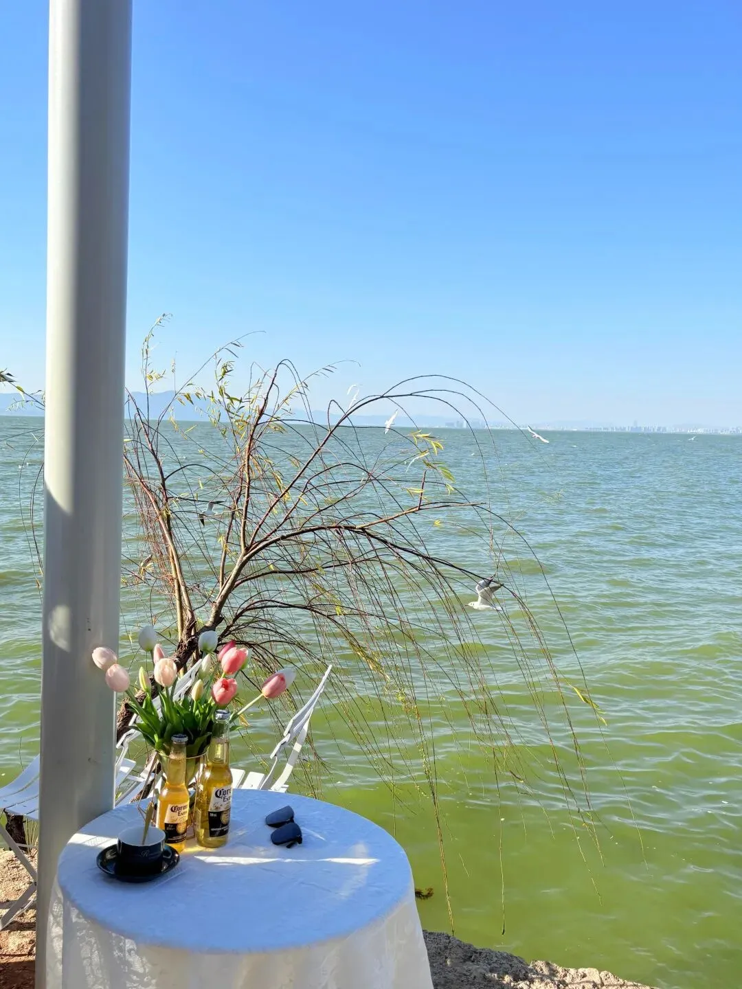 上午前往海埂大坝,大坝免费开放,沿湖视野开阔,可近距离与红嘴鸥互动,欣赏滇池的辽阔风光,清晨时分鸥群活跃度高,观赏与拍摄效果俱佳。