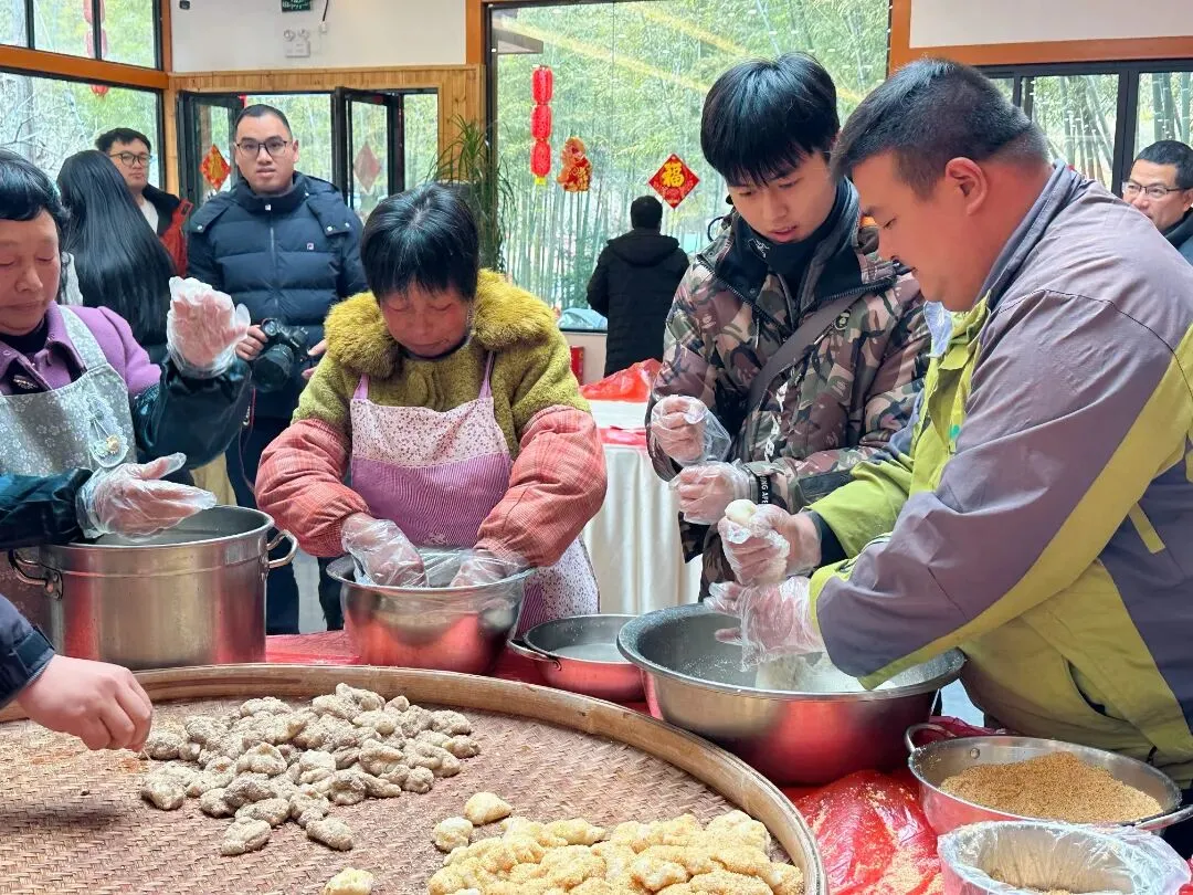 这里有地道的年味体验打糍粑—木槌起落间,糯米的香甜弥漫山谷搓圆子—软糯的面团,搓出圆润的圆子写对联—亲手写下专属春联和福字