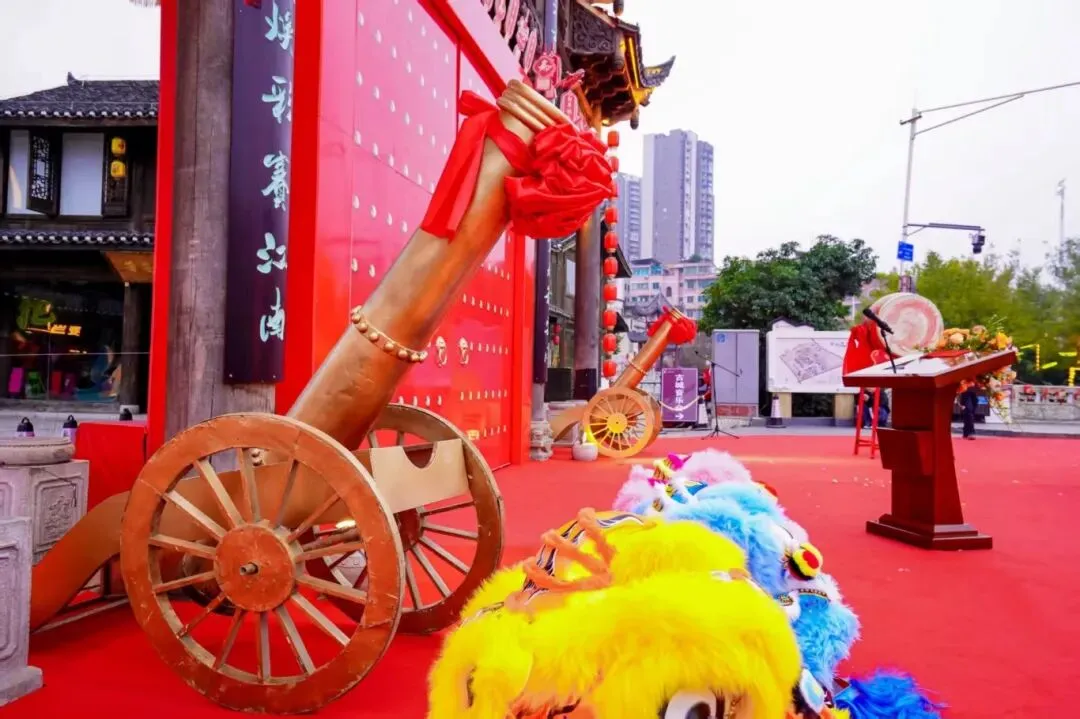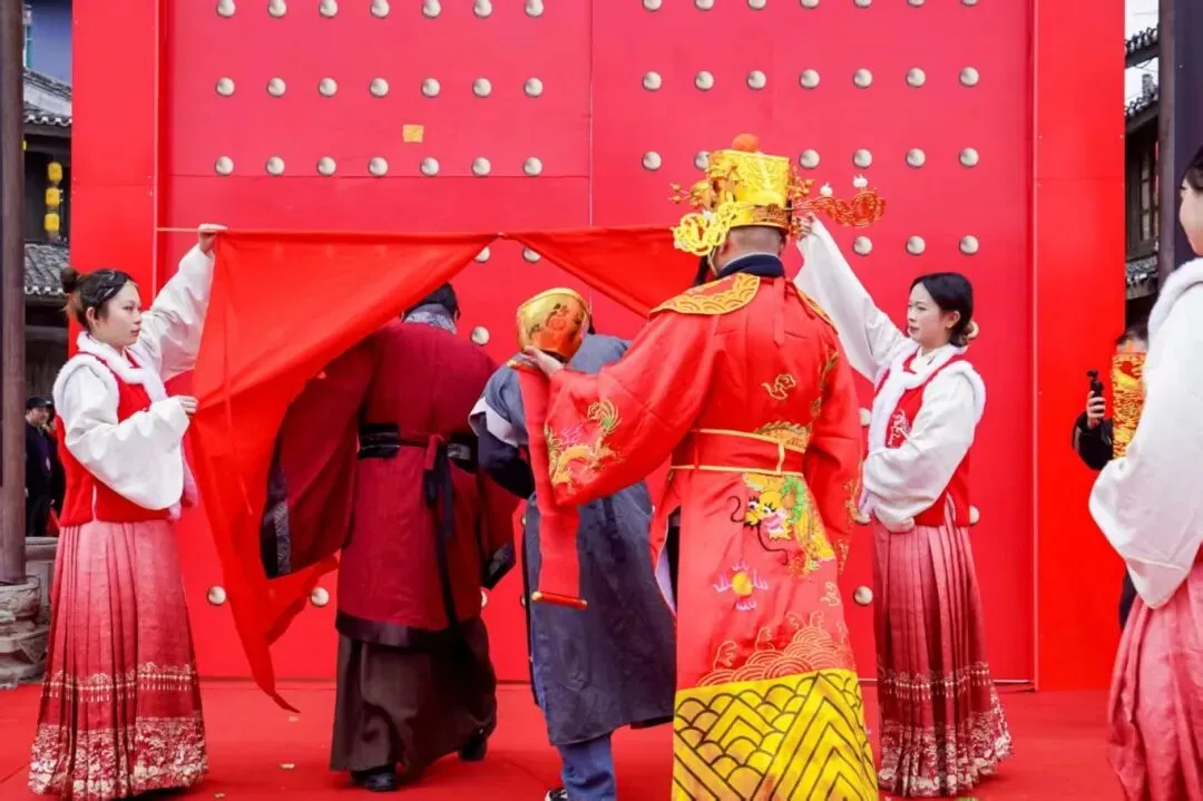 启福仪式在极具明代风韵的开场舞蹈中正式拉开帷幕;醒狮欢腾登场,完成采青、点睛、吐福等经典环节,祥瑞开道为盛典助阵;特邀资深国学大师主持祈福仪式,融入五行“土”元素,以庄严仪轨敬拜山川,祈愿新年平安顺遂、国泰民安。仪式高潮处,三通开年鼓声鸣振山河,嘉宾共同开启财门,象征新年福运通达、财源广进,现场掌声与欢呼不断,气氛热烈欢腾。