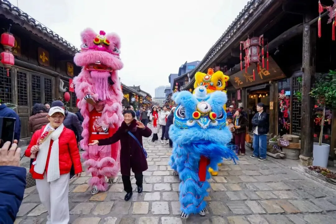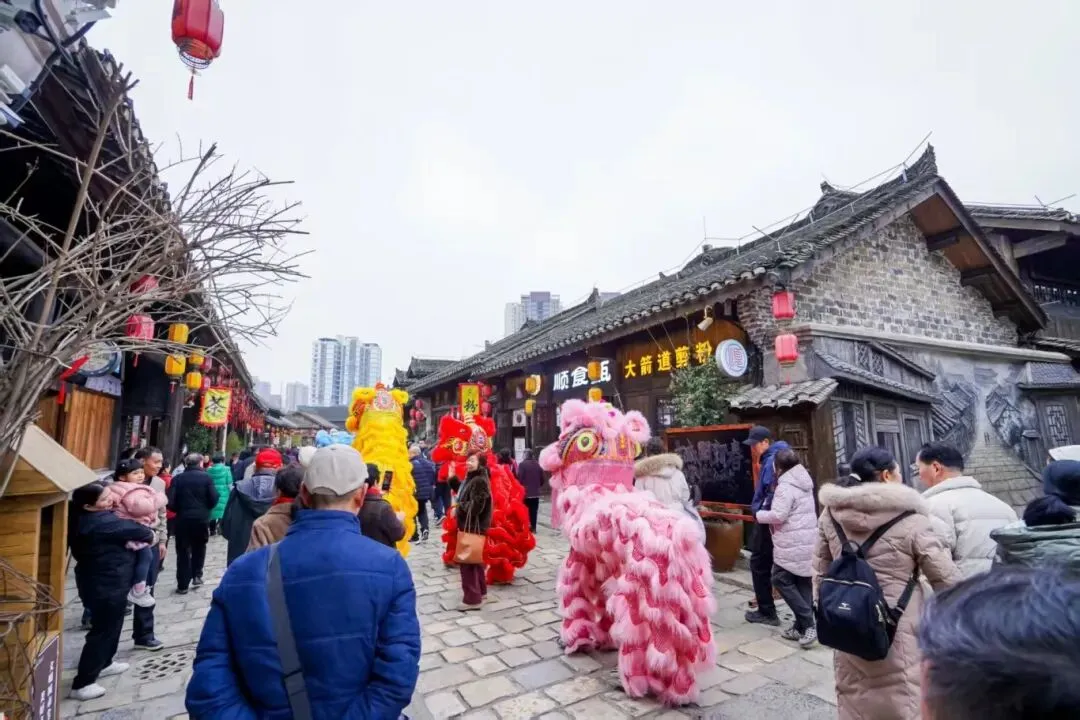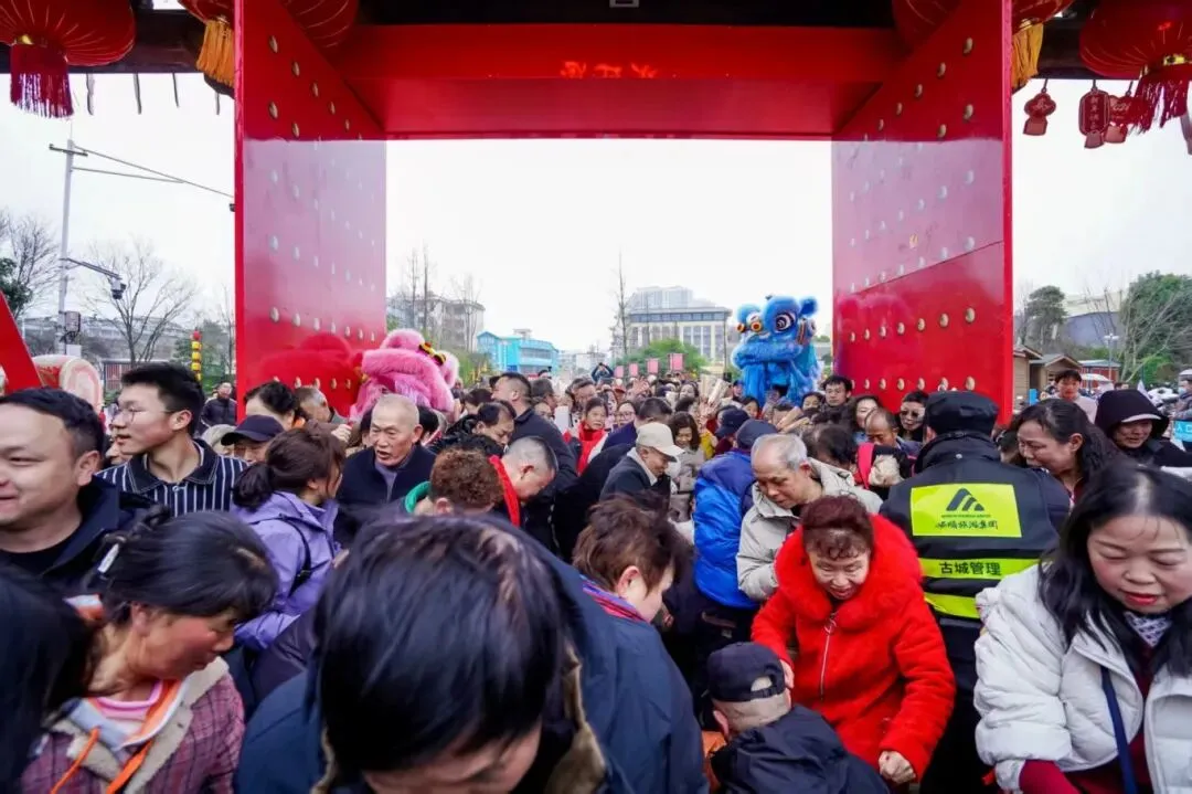 仪式过后,游园纳福环节接续进行。游客们满怀喜悦有序通过财门,积极参与红包派送、民俗巡游等互动项目,沉浸式感受新春福气。由“财神”与舞狮队组成的巡游队伍沿街送福,与游客亲密互动、合影留念,欢笑声遍布古城街巷,洋溢着一派团圆喜乐的节日图景。与此同时,黄果树、龙宫、天龙屯堡、格凸河四大景区也结合自身资源特色,同步开展了形式多样的开财门活动,与安顺古城主会场联动呼应,让全域游客都充分体验到安顺新春的独特魅力。