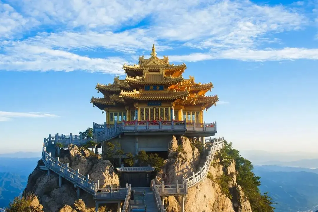 伏牛山主峰,金顶道观群藏于云海,日出、雪景、仙侠风拍照出片率极高。