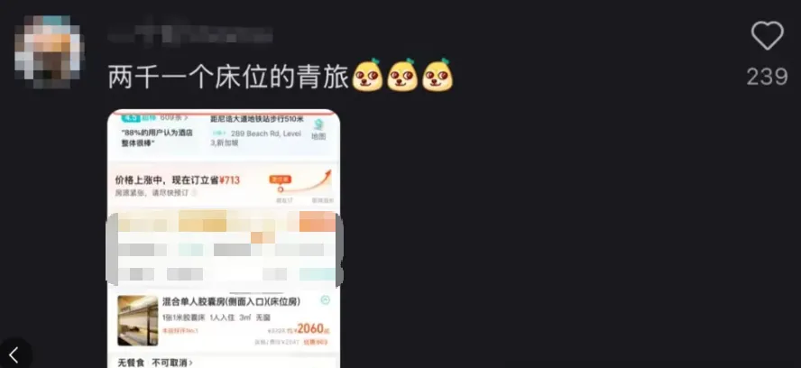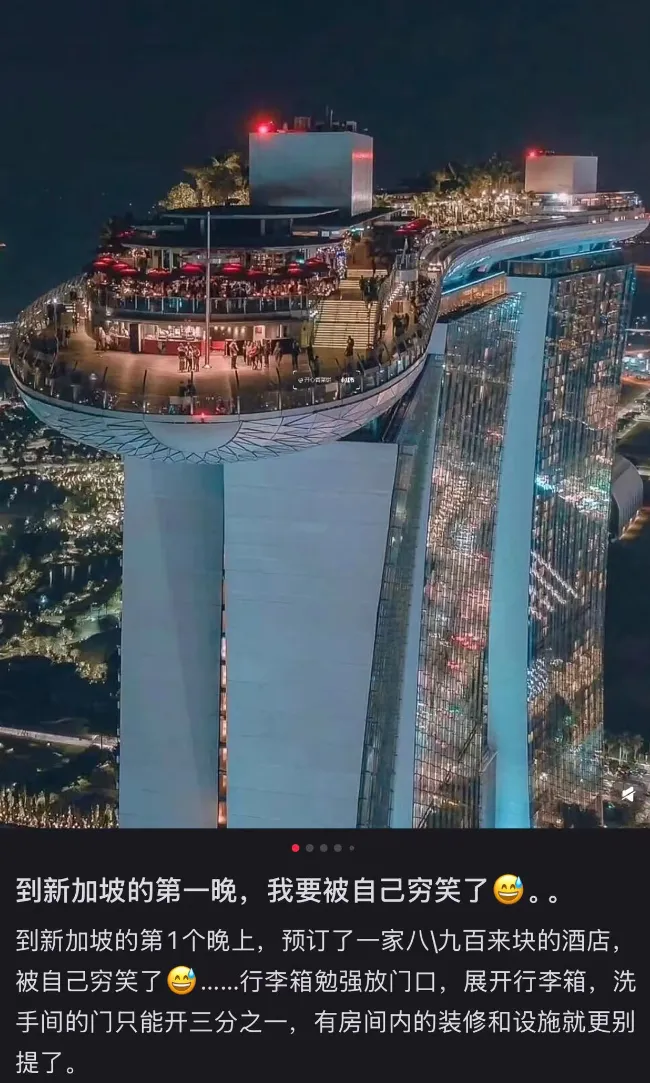 网友表示,自己到新加坡的第1个晚上,预订了一家800-900人民币的酒店,被自己穷笑了....
