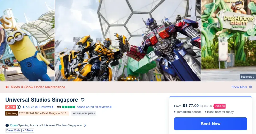 环球影城1人77新币(约430人民币),足够玩一天了。