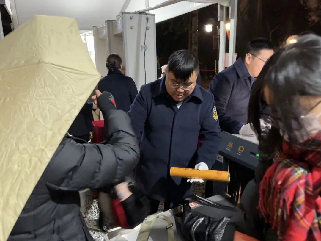 带着愿景来,载着平安归。除夕夜烧头香,祈福新年好运,是中国人的传统习俗之一。此次任务也是公司农历年内收官之战,为打好这场“压轴战”,除夕当晚,全体参战人员舍弃与家人团聚的温馨时光,以大局为重,无惧严寒、恪尽职守,始终保持昂扬斗志,将安保服务作为展现“市保铁军”风采的窗口。督察队全程动态巡查各执勤点位,确保执勤规范、纪律严明、服务文明,让市民游客切实感受到市保温度。据统计,当晚共查验入场人员近4000余人次,安检包裹近1000件,查堵禁限带物品千余件。技防团队同步高效完成两大安保指挥部的搭建与运维,实时监测全域客流数据,精准掌握寺内关键区域安全态势,为指挥决策提供了坚实的数据支撑。