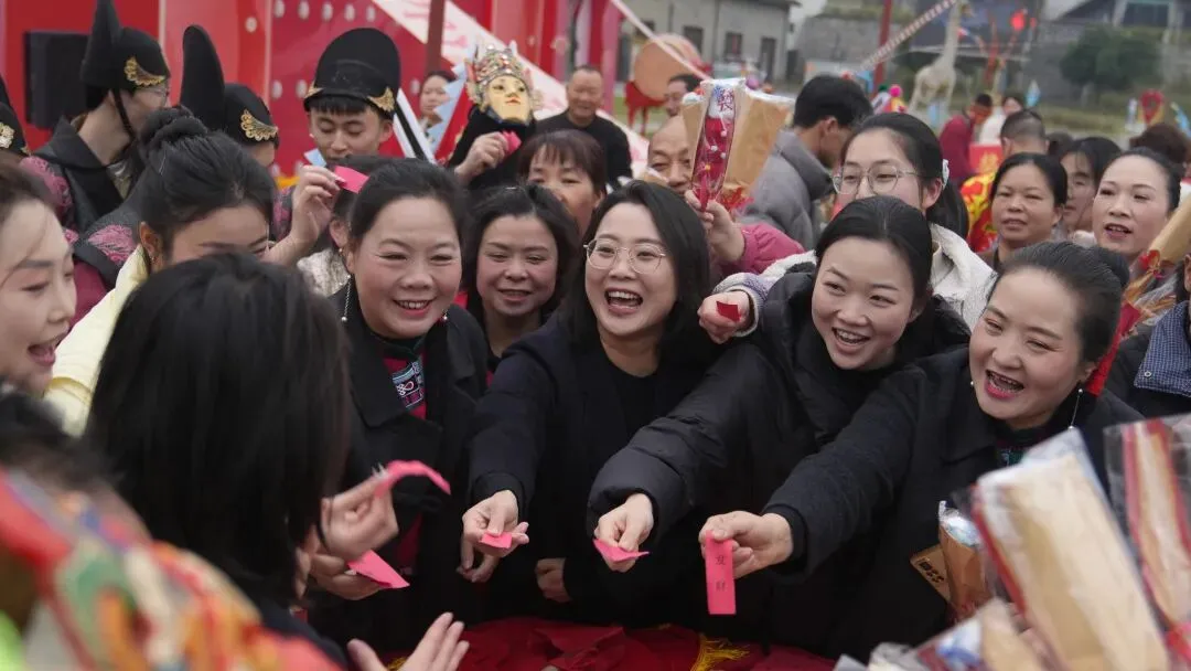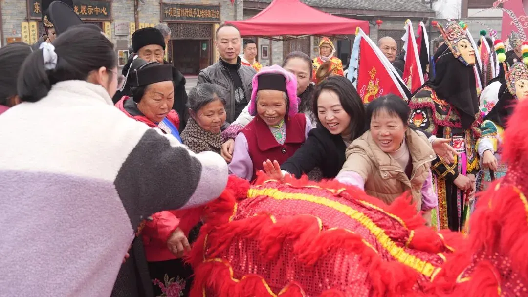 在活动现场,红灯笼、地戏脸谱与古朴的屯堡石墙相映成趣,舞蹈、舞狮表演轮番登场,赢得在场游客阵阵欢呼。随后,众人一同推开财门,寓意敞开福门、广纳财源,也让远道而来的游客沾福纳祥。整个仪式庄重而热闹,让现场游客沉浸式感受传统文化魅力。