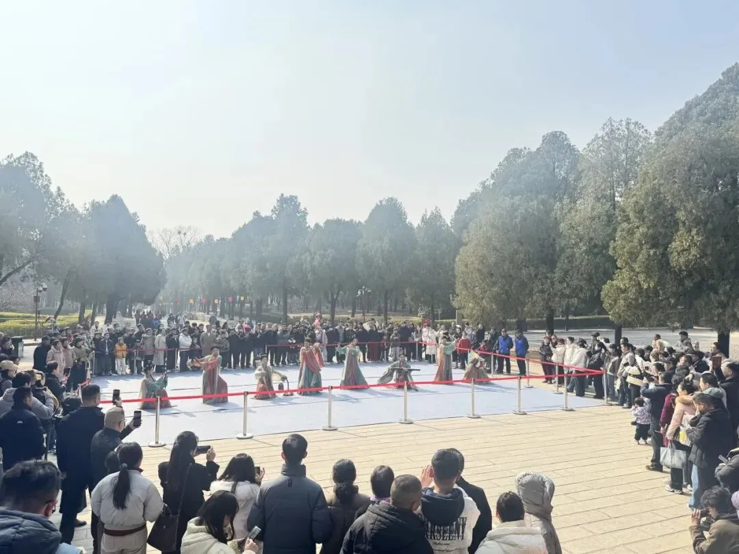 伎乐人舞蹈、玉女朝元舞蹈惊艳全场,壁画上的人物仿佛“活”了过来,游客们纷纷举起手机拍照。