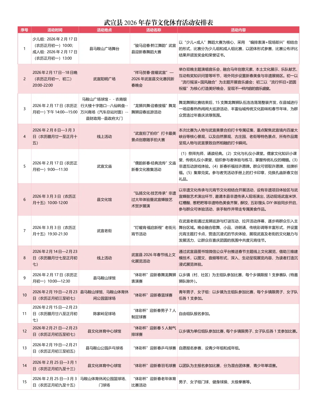 更多精彩活动详见下表,给您一个热闹的“武宣年”!