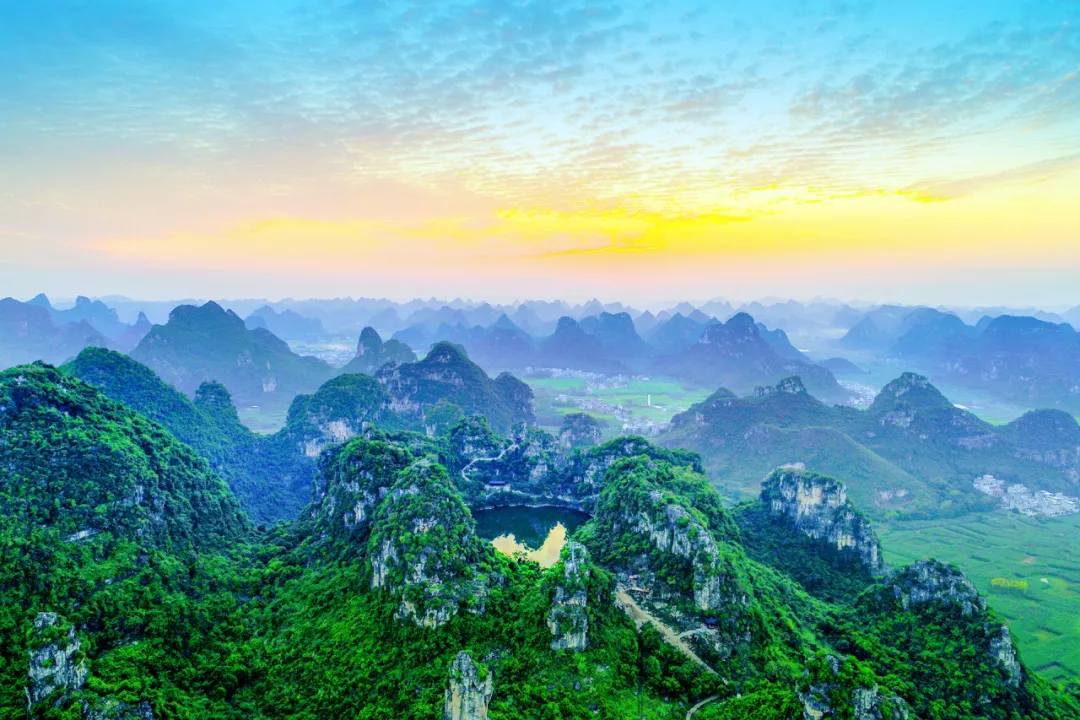 神奇的高山平湖,被誉为“武宣明珠”。池水清澈,四季不涸,四周绿树环抱。传说有八仙曾在此驻足,新年登高至此,许下心愿,别有一番意境。