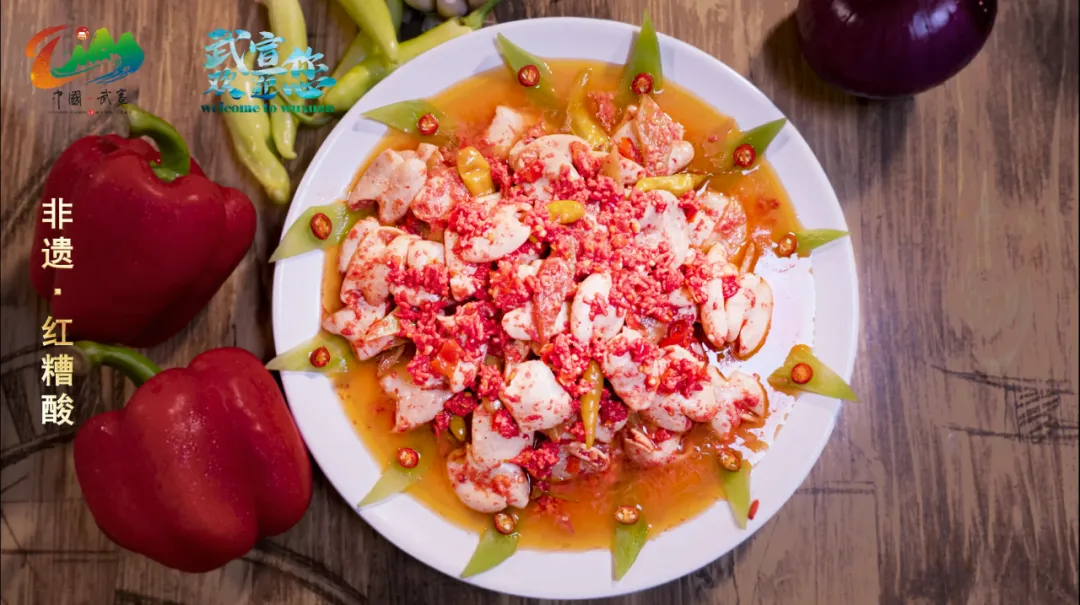武宣味道,少不了这一抹红!招牌红糟酸,以红糟浸染瓜果时蔬——嫩姜脆、豆角爽、辣椒烈,成就一坛坛酸辣生津的佐餐神器。更绝的是,红糟入菜堪称点睛之笔:红糟大肠、红糟猪肚……“万物皆可红糟”,让平凡食材瞬间活色生香!