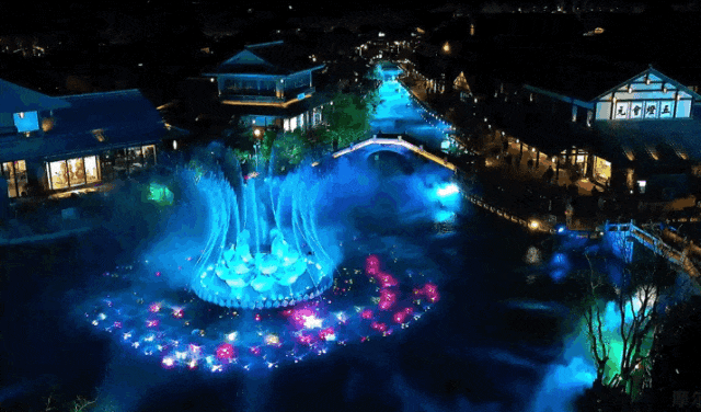 夜幕下的小镇犹如一颗璀璨的明珠, 镶嵌在这片美丽的湖光山色之中。 无论是歌舞乐赋还是声电光影, 游客沉浸其中, 都能感受到拈花湾独特的仪式感