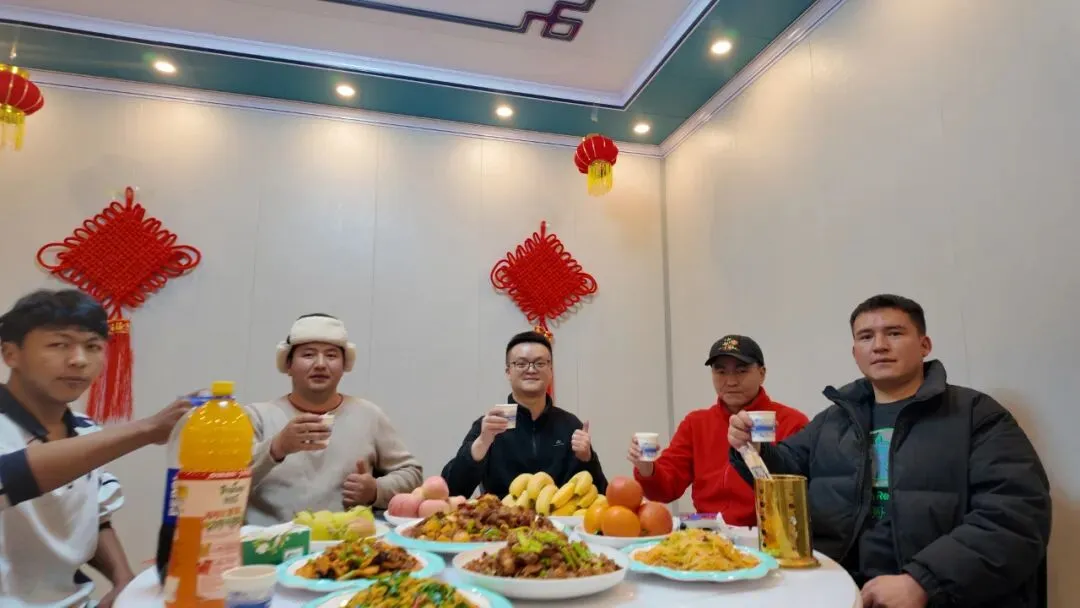 帕米尔文旅集团及景区领导始终牵挂着一线坚守人员,特意为在岗员工精心筹备了热气腾腾、荤素搭配的年夜饭,驱散冬日严寒、慰藉思乡之情,更通过线上视频连线,送去诚挚的节日问候与新春祝福,还为现场每一位坚守者送上了饱含心意的红包。