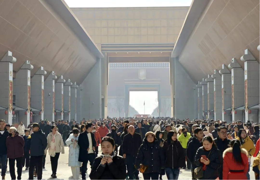 大年初一,作为中国人心中最具仪式感的日子,前往法门文化景区瞻拜佛指舍利,是大多数人辞旧岁迎新春的传统选择。清晨时分,当晨曦微露,景区停车场、山门广场、景区大道、二道口便已热闹非凡。游客们怀揣着对新年的美好期许,或举家同行,或三五好友结伴,摩肩接踵间,互道一声“新年好”,温暖的笑意融化了冬日的寒意。