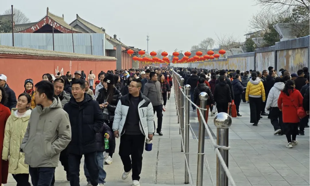 景区内,更是人流涌动。大家在五福门前打卡合影,马年美陈更是人满为患,你来我往好不热闹,熙熙攘攘的游客一起庆新年更添节日热闹。