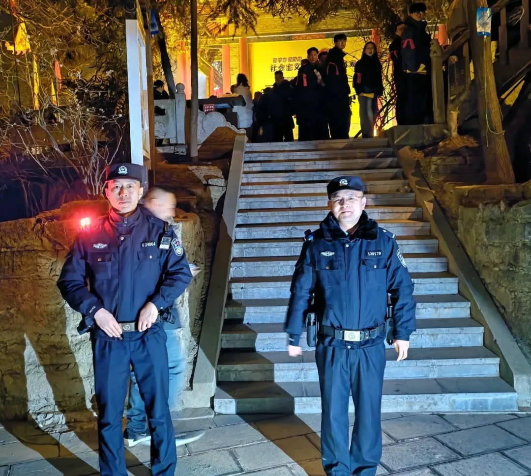 “师傅,慢点走,注意脚下台阶”“小朋友别乱跑,牵好家长的手”……暖心的提醒声在景区内不断响起。执勤民辅警用脚步丈量平安,用坚守守护团圆,成为龙泉寺景区一道独特的“平安风景线”。