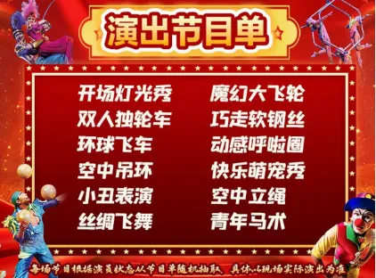 魔幻大马戏、美食展位、民俗体验、百姓大舞台