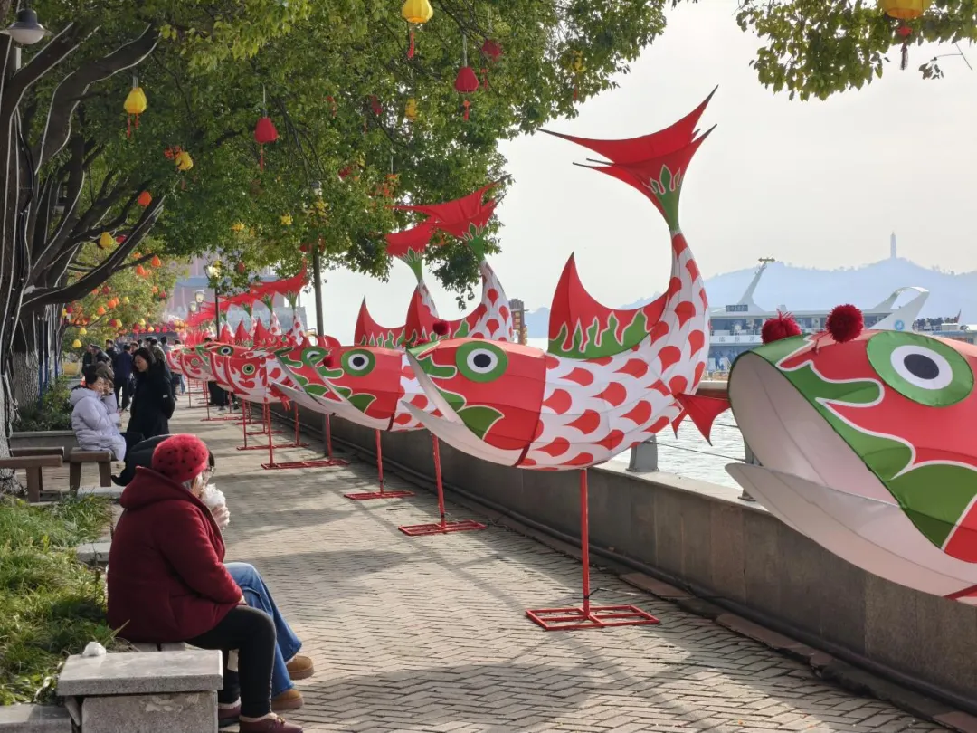下午6点,姥山岛景区准时沸腾!灯光亮起,民俗舞龙一登场,年味瞬间拉满——金龙绕场、醒狮腾跃,鼓点敲得人心尖发烫。总台甄选文创快闪店更是吸引眼球——“骐骥驰骋”系列毛绒玩偶眨着圆眼睛,游客不禁直呼:“姥山岛的马年顶流,非这匹小棕马莫属!”