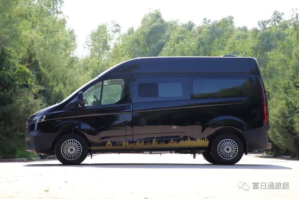车身部分,车头前脸大家已经非常熟悉了,不用过多的赘述,自上市以来,凭借超高的颜值与时尚的设计元素,就吸引了一批粉丝。再搭配上雪豹1号房车黑色的涂装,两项结合堪称国内B型房车颜值顶点,开出去要面儿有面儿。