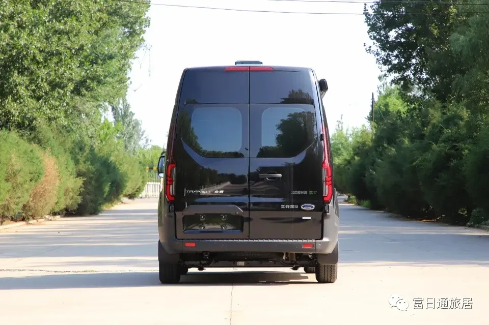 车尾双开门上,安装两扇隐私玻璃,四周围绕刹车灯组,下方配备倒车影像、倒车雷达等设备。全车整备质量2800kg,最大总质量3500kg,为使用者留有足够的载物能力。
