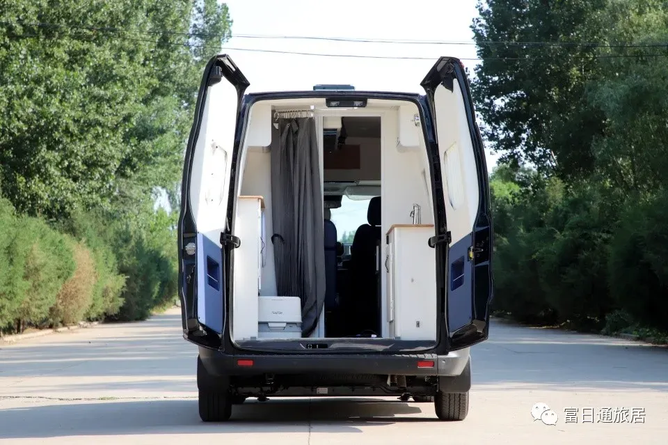 车尾整体为防水防腐卫生间,洗漱、上厕所空间非常宽敞,并且得益于车尾双开门,排气散味儿、清理卫生间也方便。