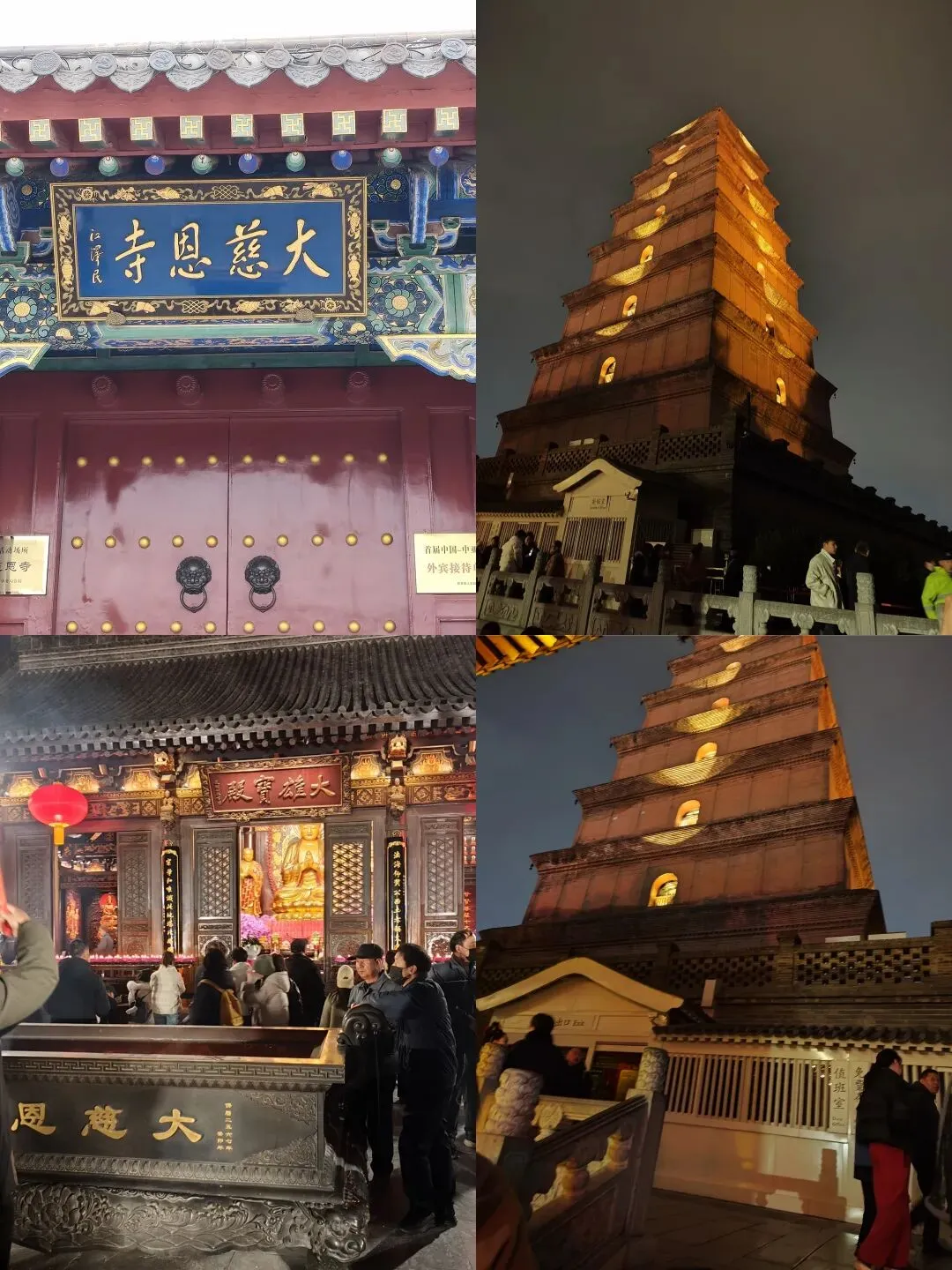 八点整,山门准时打开,我们随着人流走进寺里。夜晚的大慈恩寺少了白日里的喧嚣,多了几分静谧。