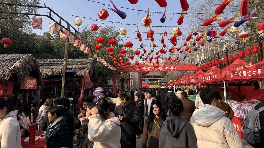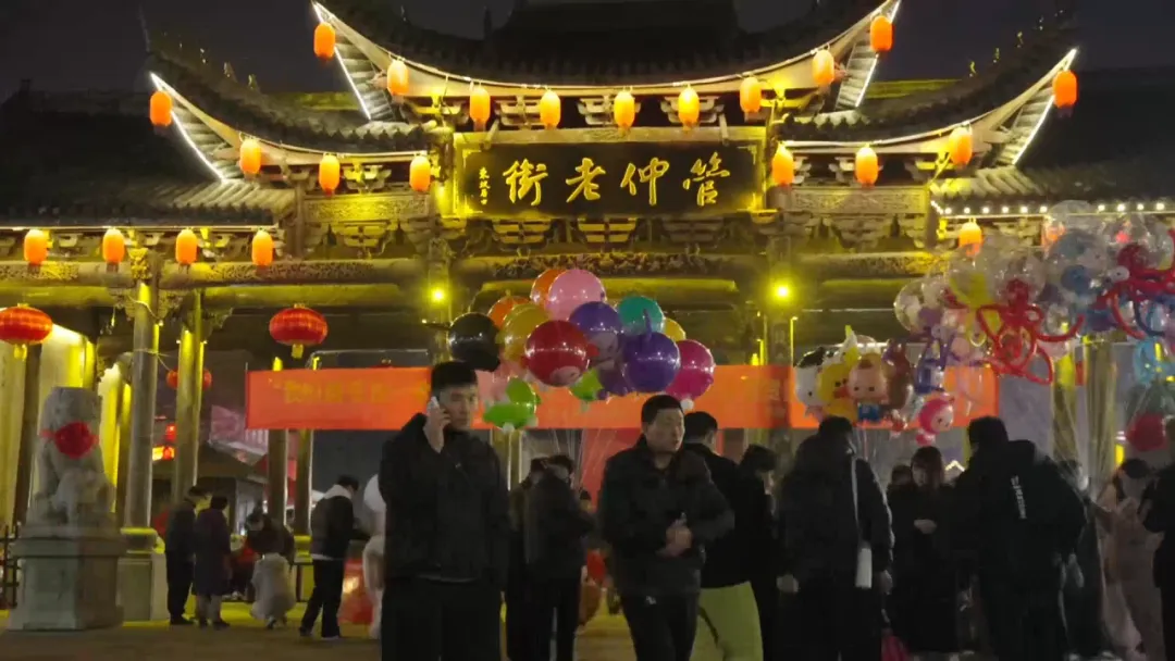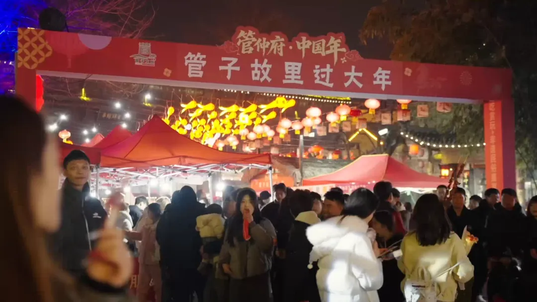 作为新春打卡首选地,管仲老街年味浓、人气旺。街区红灯笼高挂、古韵与新景交融,未入街区已是人头攒动,步入街巷更是摩肩接踵。游客们逛老街、品美食、购特产,在烟火气里感受传统年俗;沿街商铺琳琅满目,地方特色文创与年货备受青睐,欢声笑语此起彼伏。