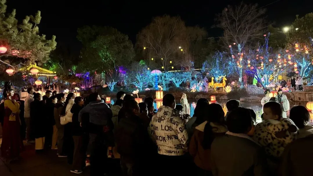 尤家花园内同样热闹非凡、日夜欢腾。景区精心编排实景演绎与特色节目,《烽火长歌 与民同泽》等演出轮番上演,大戏台前观众里三层外三层,掌声与喝彩声不断。白天游园赏景、夜间观演沉浸式体验,吸引大批家庭游客结伴而来,在园林美景与流光溢彩中共享团圆时光。