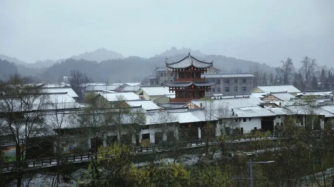 华阳古镇坐落于秦岭南麓的罕见小盆地中,面积约7平方公里。古镇被三座青山环抱,两条河流穿行其间,整体布局恰似一叶精美的小舟,静静地停泊在秦岭的绿水青山之间。