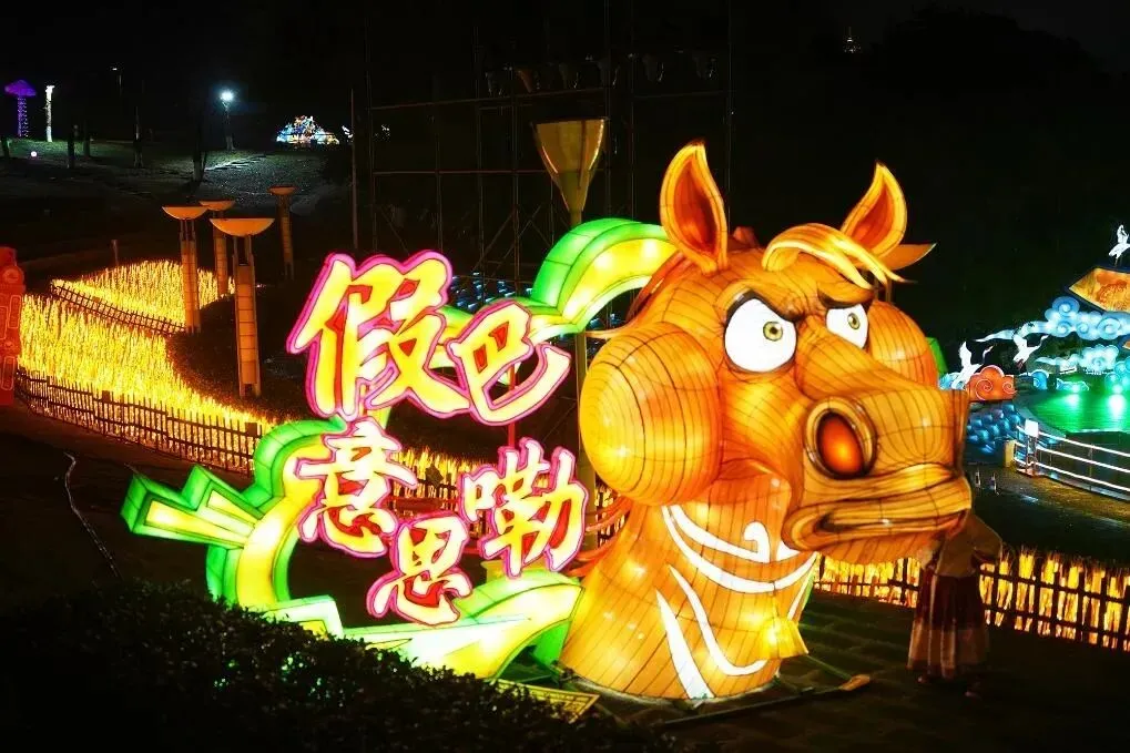 别以为灯会都是千篇一律的红灯笼,这里主打一个 “传统 + 潮玩” 双在线!马年专属的方言灯组太懂重庆人了,“雄起”“巴适得板”这些刻在骨子里的俚语,化作巨型彩灯立在湖边,拍照打卡发朋友圈,主打一个 “本土认证”。
