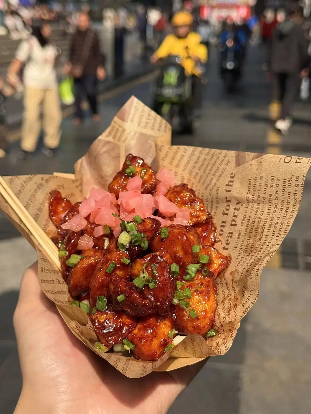 锦里的糖油果子闪着琥珀光,宽窄巷子的蛋烘糕蓬松如云,奎星楼街的串串香沸腾着市井的热闹。