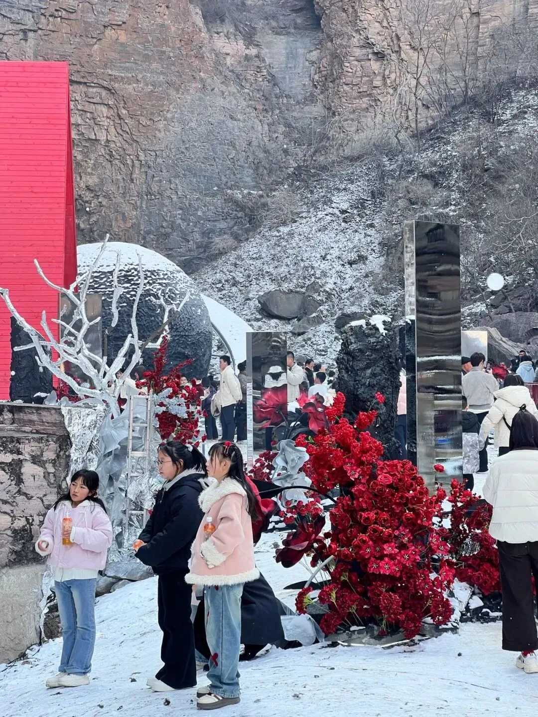 在银装素裹的山野间,一座温暖的红房子格外醒目。这里是绝佳的群像打卡点,约上三五好友或家人,在这里留下一张张充满温度的新年合影,红红火火,喜气洋洋!