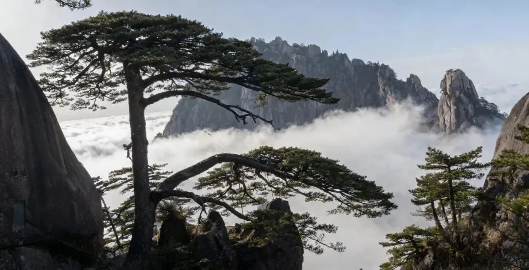 黄山的奇松破石而出。枝干舒展,松针凝着清露。怪石立在云端,云海翻涌成浪,温泉的暖意漫过山石。日出时霞光铺满峰峦,暮色里群峰隐入苍茫,每一刻都有独特的风骨。