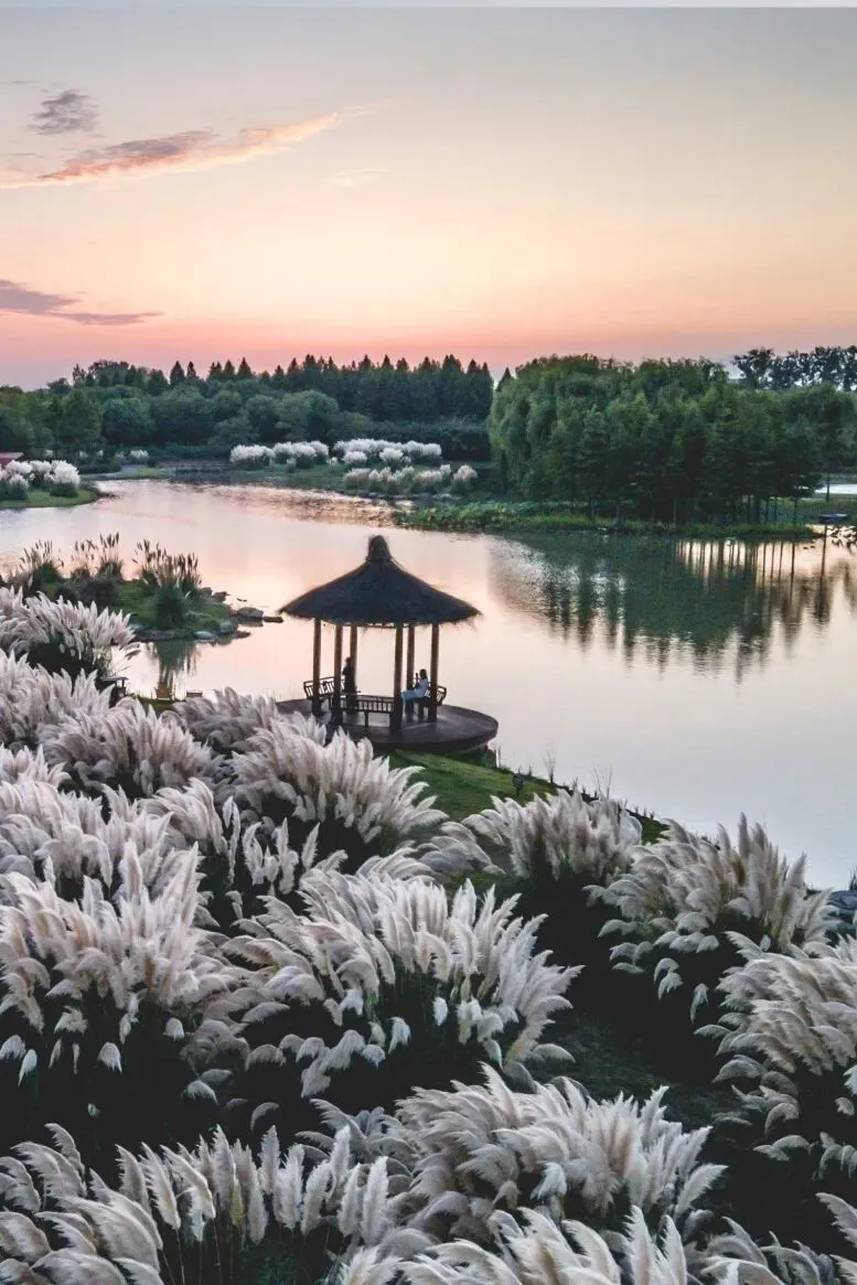 这里东临京杭大运河,坐拥高邮湖的温润,是国内少有的集民宿、颐养、农耕、园林为一体的湿地公园,四季皆有风情。