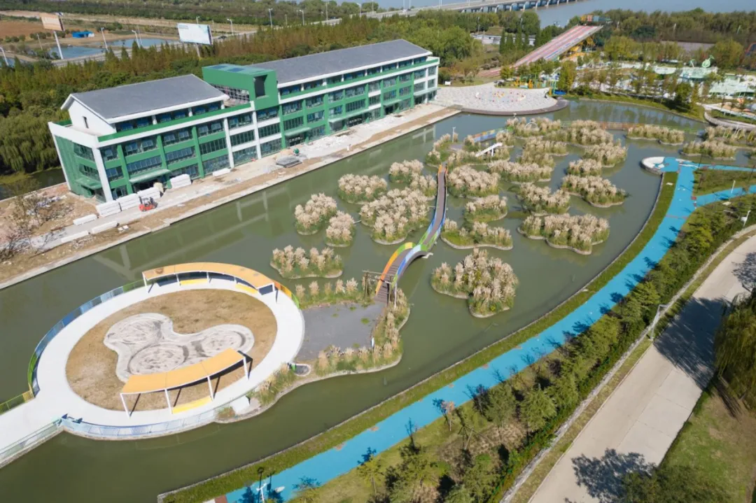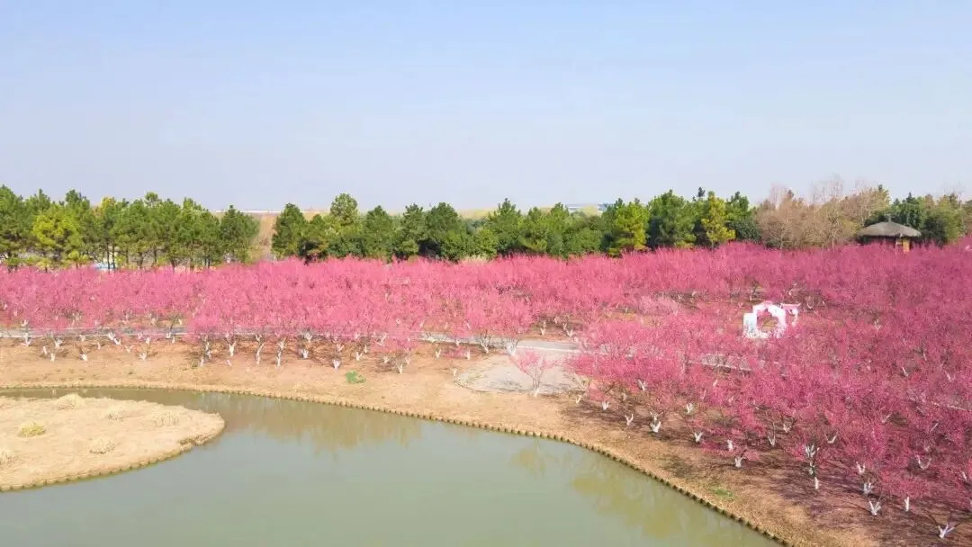 这里还是春日限定的大花园,湿地沿岸与园林间,桃花、海棠、二月兰各色春花渐次绽放,与水景、芦苇构成一幅灵动的江南春日画卷。