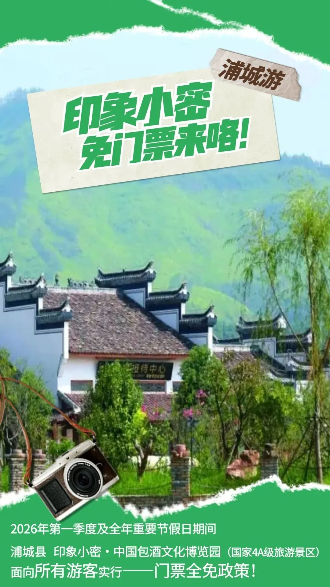 近日浦城县出台了《浦城县实现2026年一季度 经济社会发展良好开局的若干措施》,2026年第一季度及全年重要节假日期间,浦城县“印象小密·中国包酒文化博览园”(国家4A级旅游景区),面向所有游客实行——门票全免政策!(仅收取10元服务费)