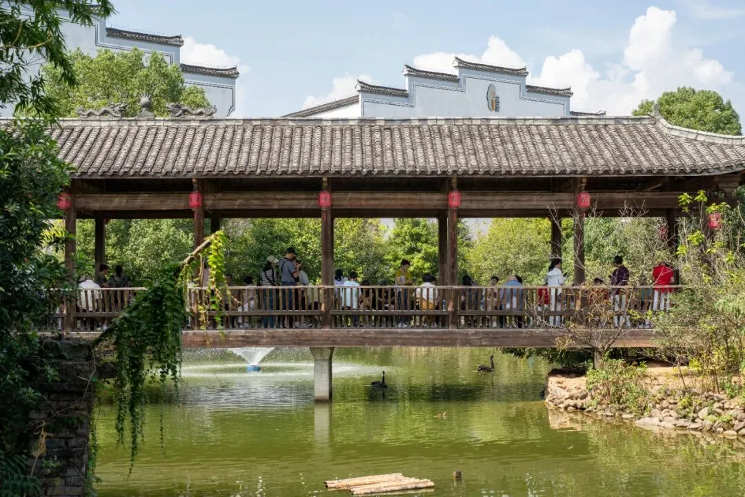 走进园区,时光仿佛被温柔折叠。白墙黛瓦的徽派建筑与玲珑雅致的苏州园林交相辉映,移步换景间,既见江南园林的诗意,亦见徽州古建的沉稳。这里没有围墙式的展柜,只有流淌在亭台水榭间的酿造故事。