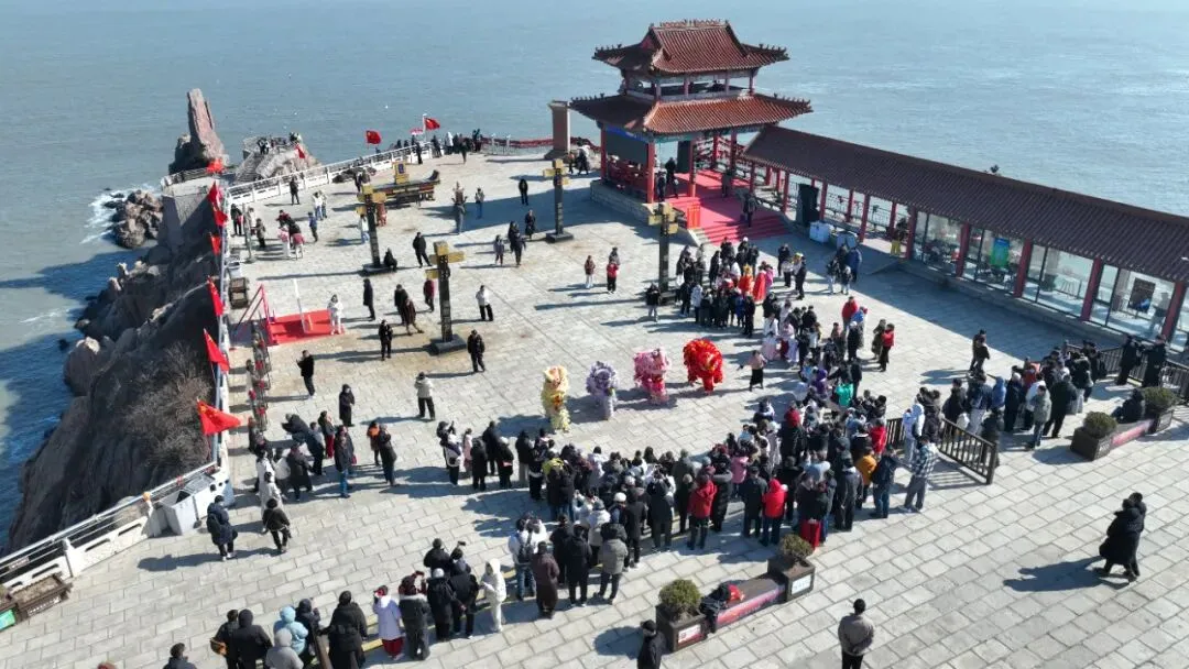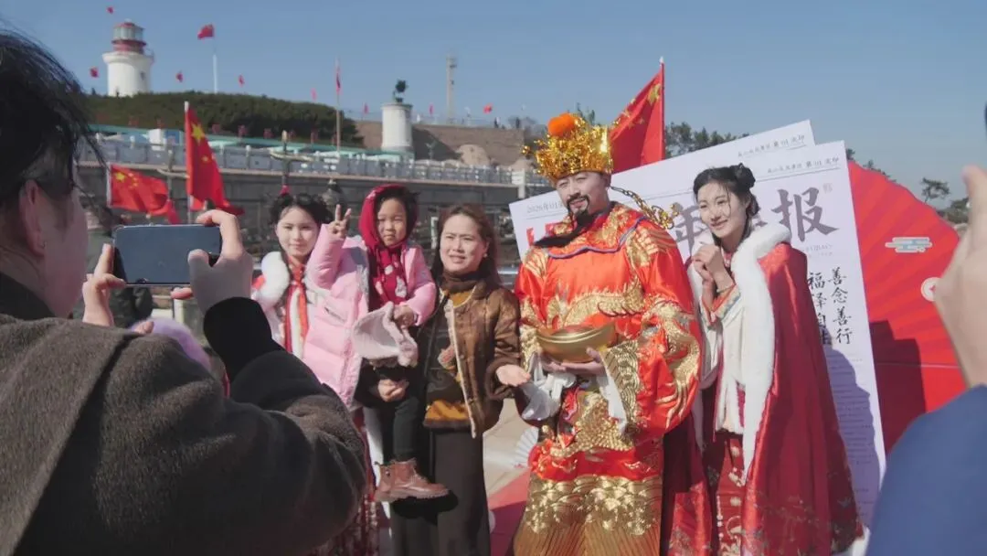 成山头景区推出马年新春祈福大联欢活动受到游客们的欢迎。舞龙舞狮非遗展演、财神巡街赐福、沉浸式NPC互动等精彩环节,增添了节日氛围,深受游客的喜欢。游客们在这里与“财神”合影,敲好运钟,许下新一年的美好祝愿。