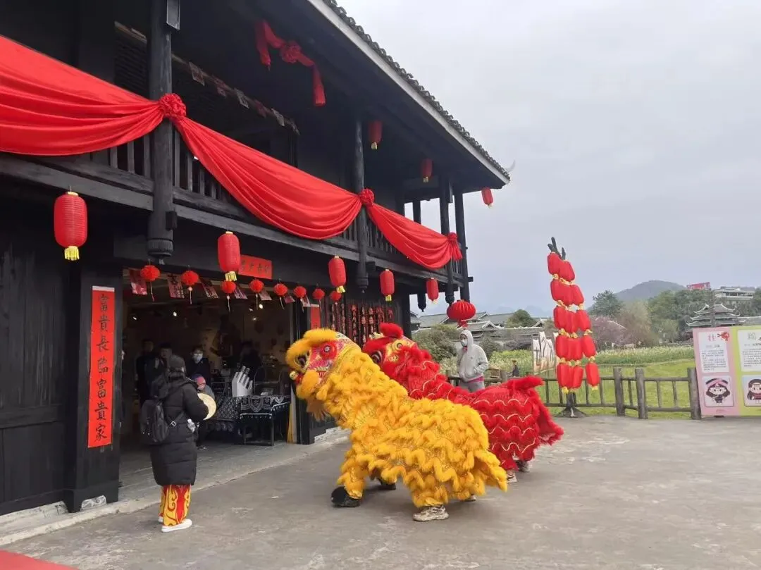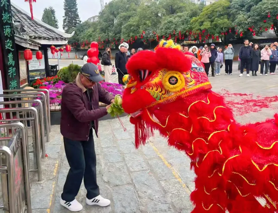 舞狮还绕着景区各处行拜年之礼,步步生威送福来,为现场游客朋友们送上新春最真挚的美好祝愿。