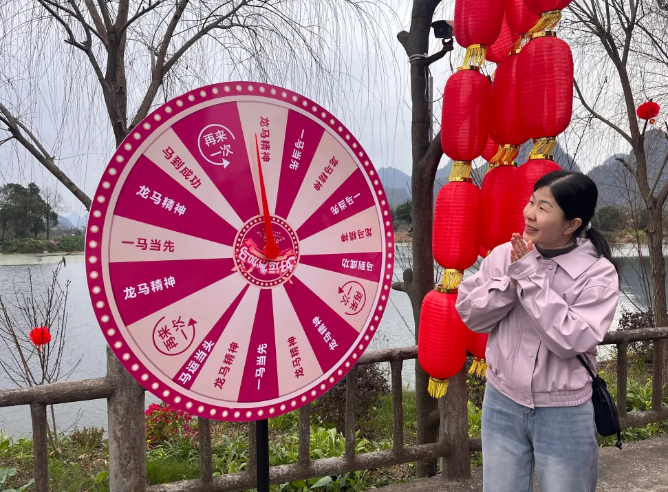 花楼前的马年专属红包大转盘区域,自活动开启就人气爆棚,成为游客朋友们打卡的热门点位。属马、姓马的游客朋友们带着身份证有序排队,满怀期待地参与转盘抽奖,每一个环节都充满欢乐。当指针定格,无论是20元的“马运当头”,还是2元的“龙马精神”,大家都喜笑颜开,现金红包让每个人都收获满满,游客们拿着红包互相道贺,在惊喜与欢乐中感受马年专属的福气。