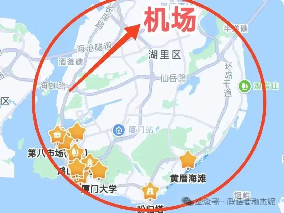 首先厦门主要玩的地方,都在这个岛上,机场也在这个岛上。需要注意的是你不一定非要起飞和降落,都是厦门机场!因为像晋江机场,距离厦门高铁,就半小时。这样的话,你就可以玩泉州和厦门,两个地方,一个起飞和一个降落,走个线路,还不不走回头路。