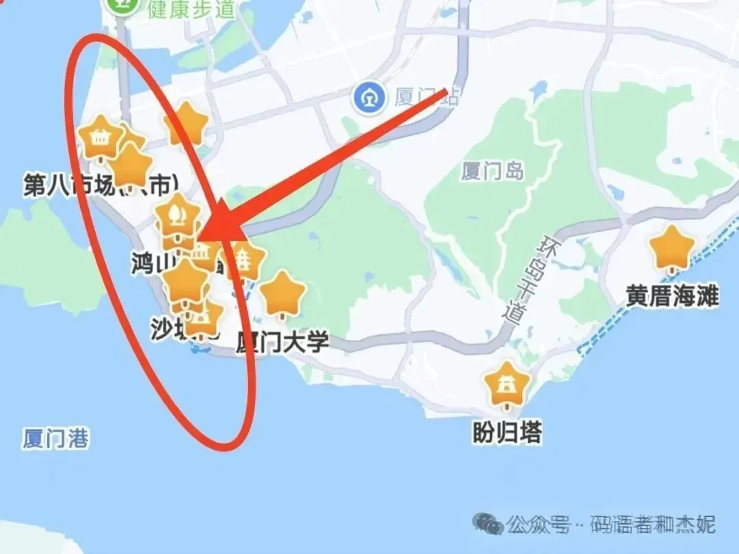 先看一下厦门的主要景点分布,大家可以看到主要就集中在这个区域。