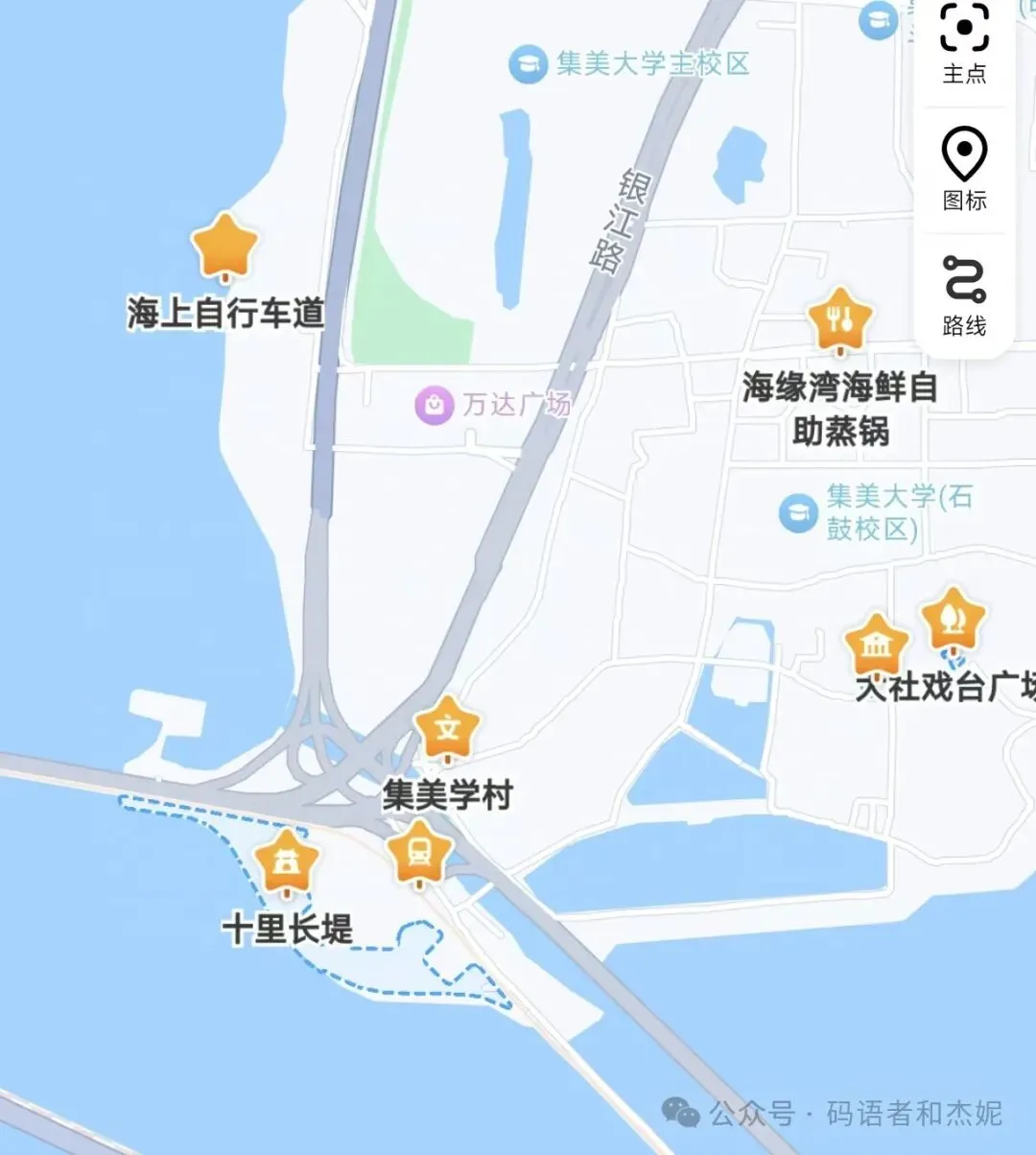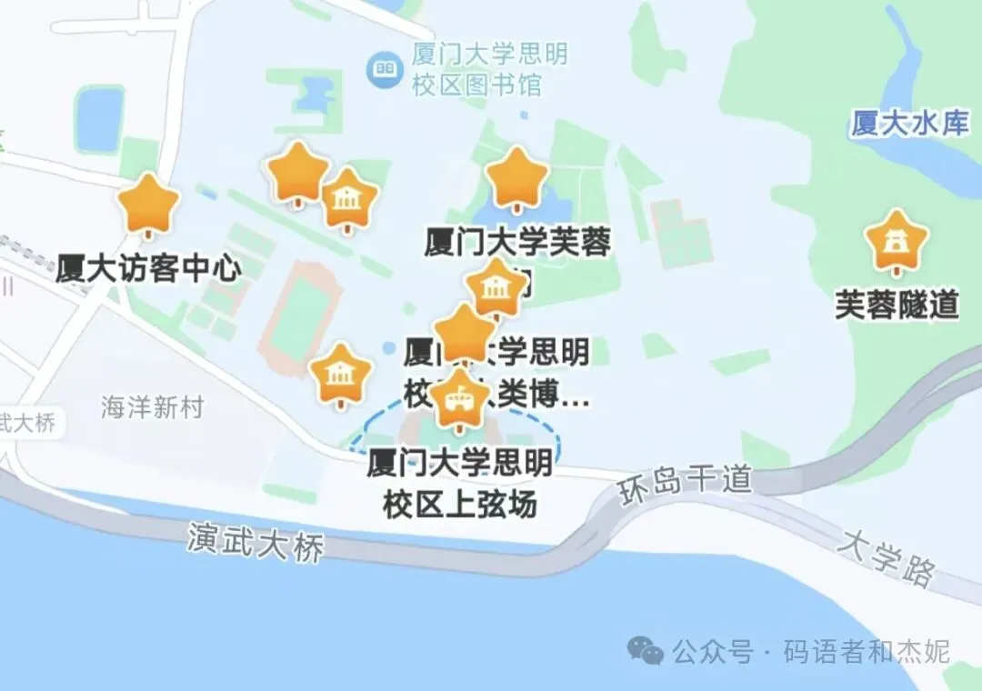 3)再导航到集美大学:我自己觉得集美大学也挺漂亮,但厦门还有个大名鼎鼎的厦门大学,有点既生瑜何生亮的感觉,相比之下肯定要稍逊一些。如果你这次厦门大学没有约上,那可以考虑当平替,进去转转。如果已经参过看厦门大学,那么集美大学可以略过