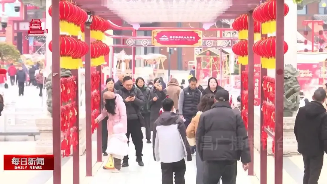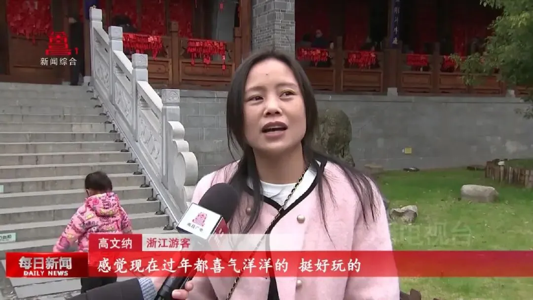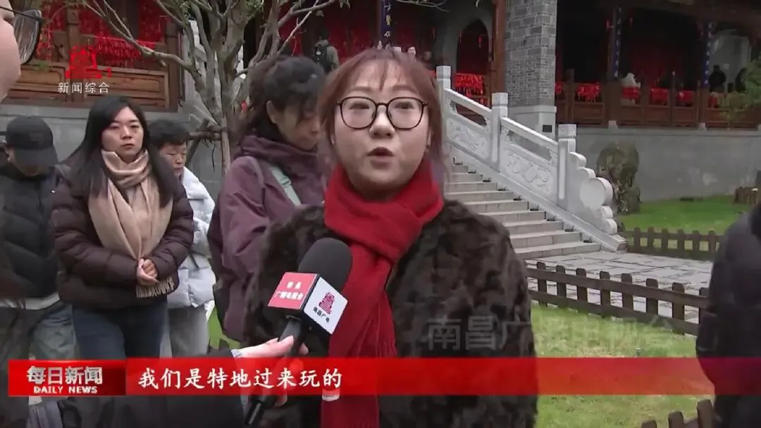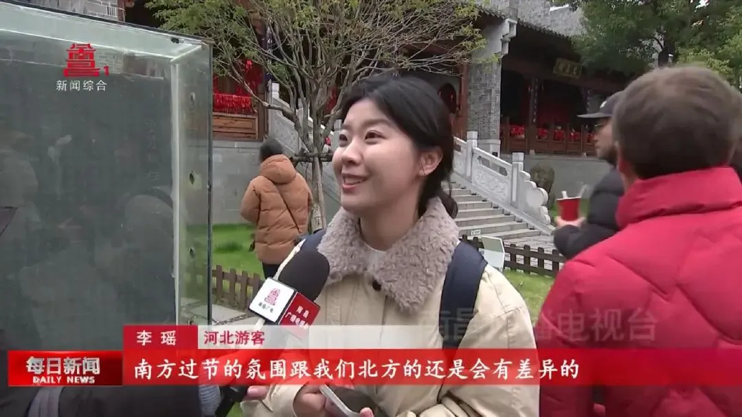 河北游客李瑶:“感觉挺震撼的,南方过节的氛围跟我们北方的还是会有差异的,(新年)祈福过年的意义会更重一些,祝福会更多一些,年味挺足的,大家过年见面好,很热情。一会去滕王阁,晚上还有烟花秀也会去看一下。”